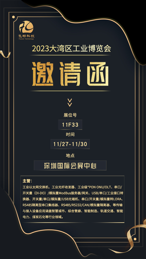 我代表杭州飛暢科技有限公司,誠摯邀請您參觀我們在2023年大灣區(qū)工業(yè)博覽會上的展臺(展臺號:11FF33)。