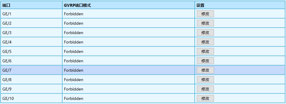 | VLAN 模式 | 端口的 GVRP 模式,默認(rèn)為 Forbidden。 |