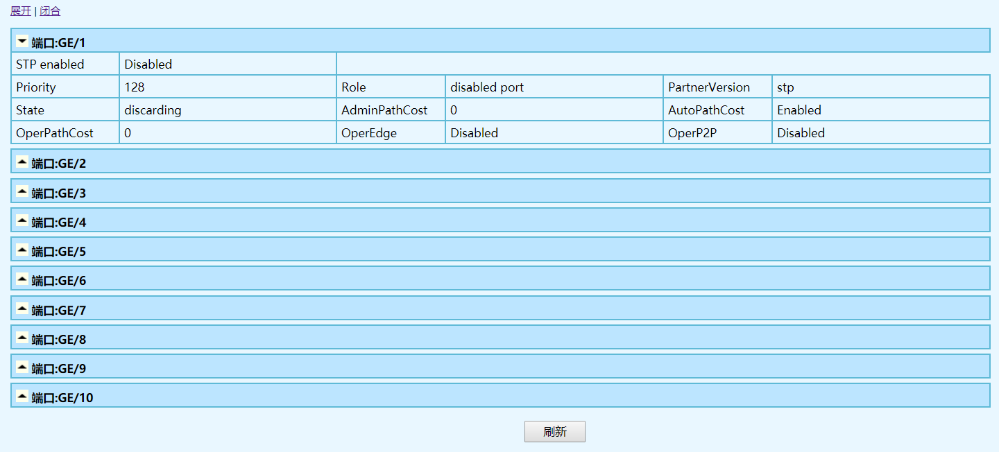 | STP使能狀態(tài) | 端口的STP使能,[禁止]或[使能],默認(rèn)為禁止 |