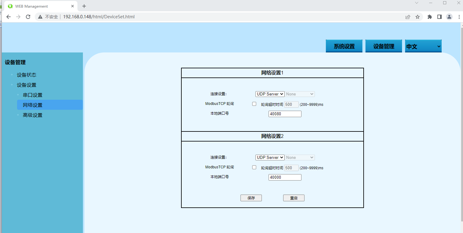 設備串口的工作模式,可選項如下: TcpServer Mode TcpClient Mode UdpServer Mode UdpClient Mode |