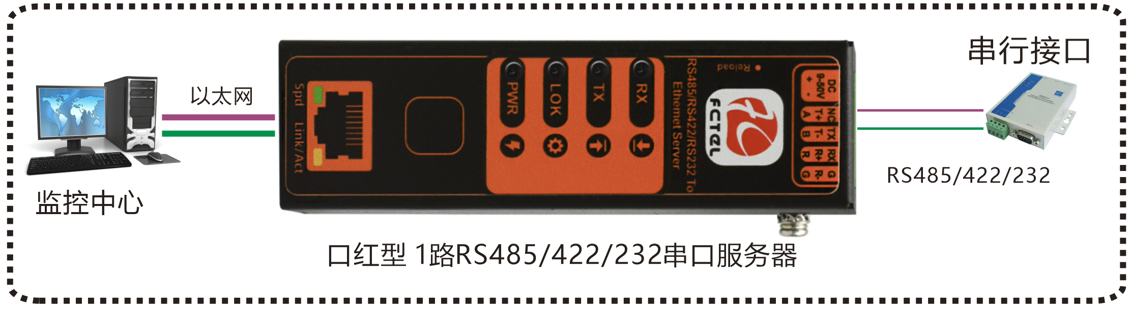 | 業(yè)務端口描述 | 1個RS485/RS422/RS232串行接口,1路百兆以太網電口 |