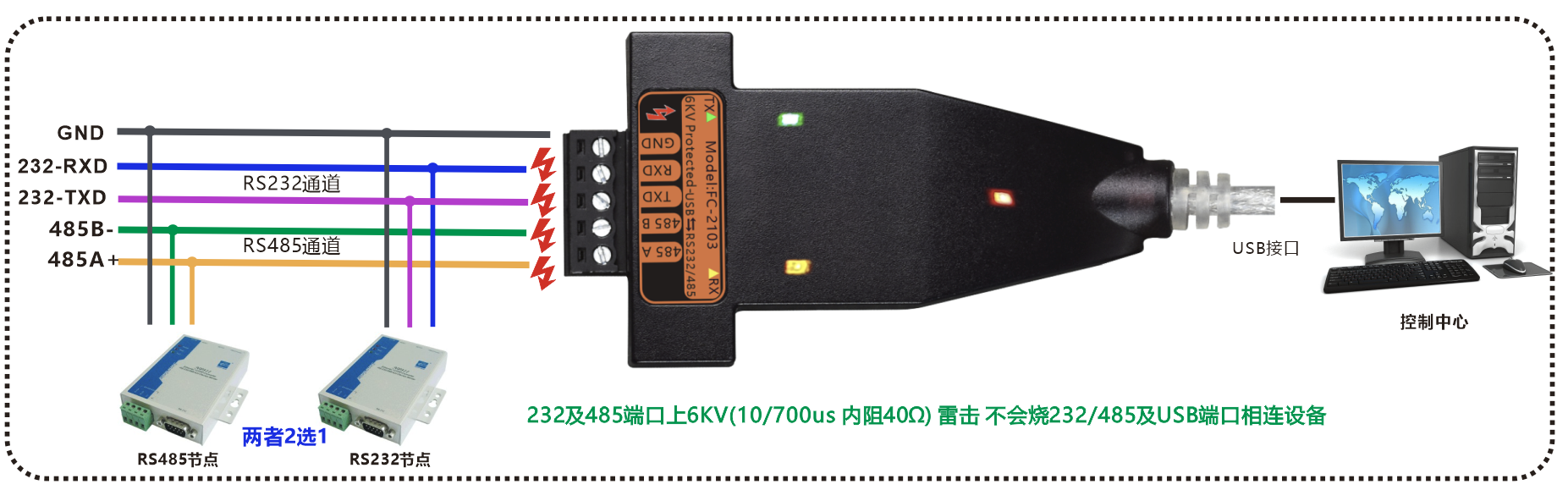 | 產(chǎn)品功能描述 | 防雷型USB轉(zhuǎn)1路RS232/485轉(zhuǎn)換器,帶USB線 |