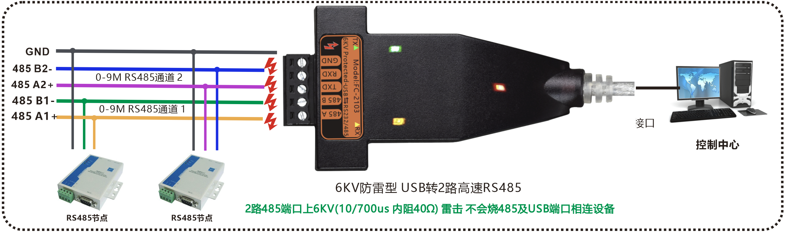 | 產(chǎn)品功能描述 | 防雷型USB轉(zhuǎn)2路RS485轉(zhuǎn)換器,帶USB線 |