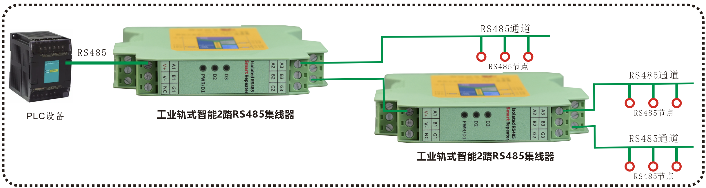 | 產(chǎn)品功能描述 | 智能工業(yè)軌式 2路RS485集線器 |