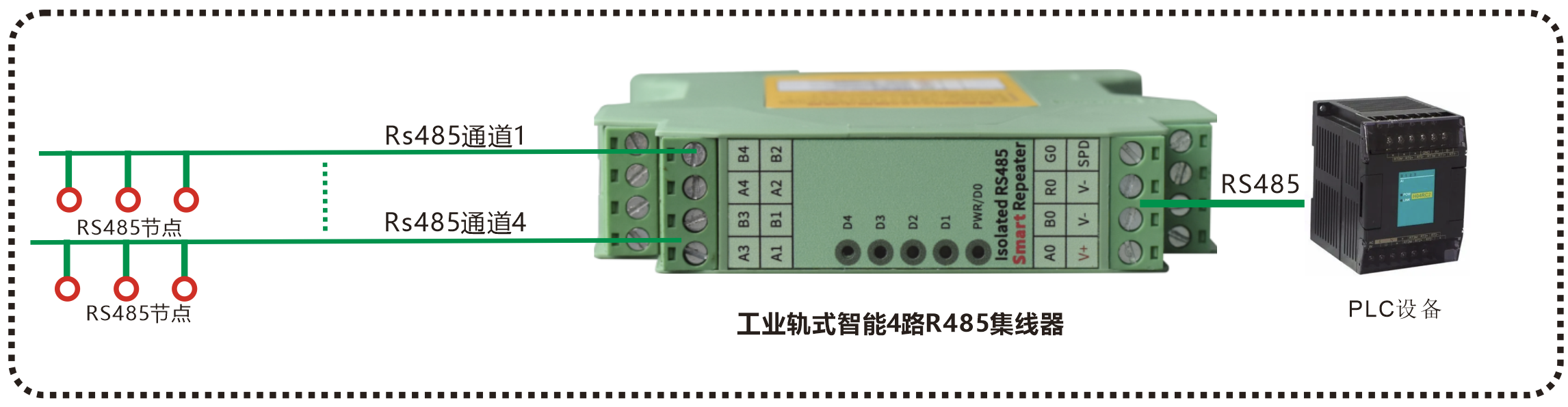 | 產(chǎn)品功能描述 | 智能工業(yè)軌式 4路RS485集線器 |
