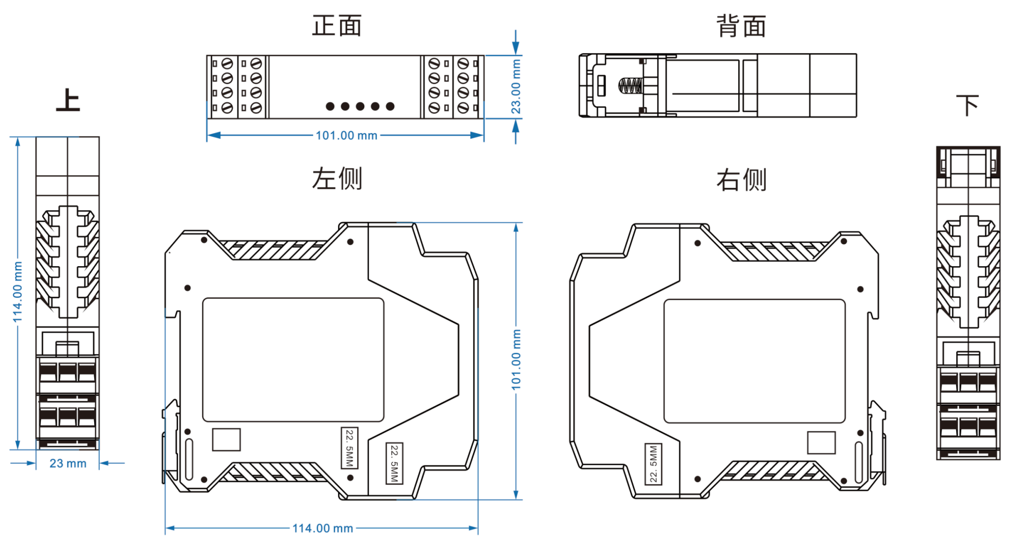 電源輸入DC9-70V ,功耗<1W 過載保護(hù):支持;反接保護(hù):支持; 接入端子:4芯5.08mm間距端子 |