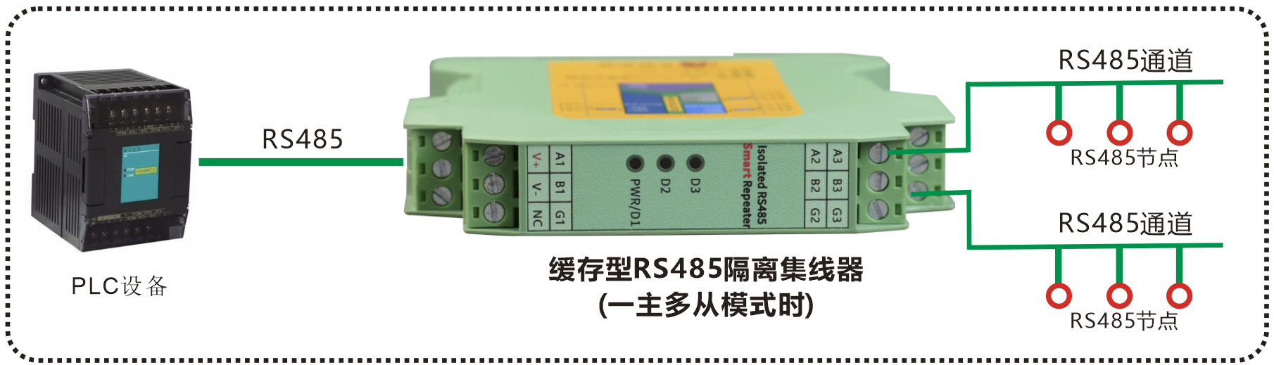 | 產(chǎn)品功能描述 | 緩存型 2主一從RS485隔離集線器 |