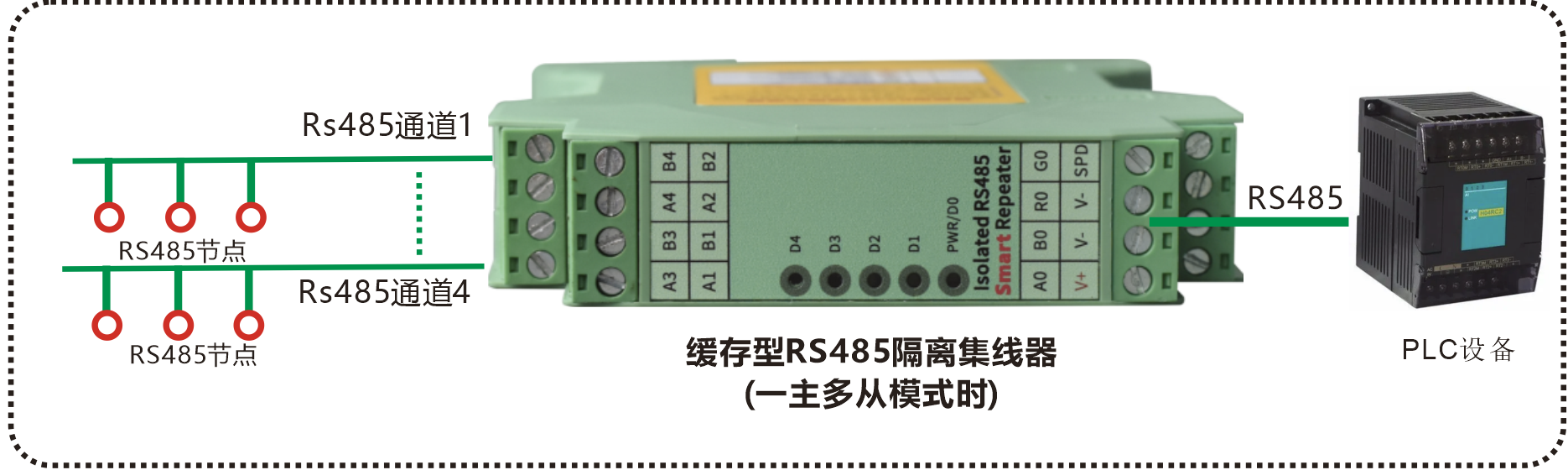 | 產(chǎn)品功能描述 | 緩存型 4主一從RS485隔離集線器 |