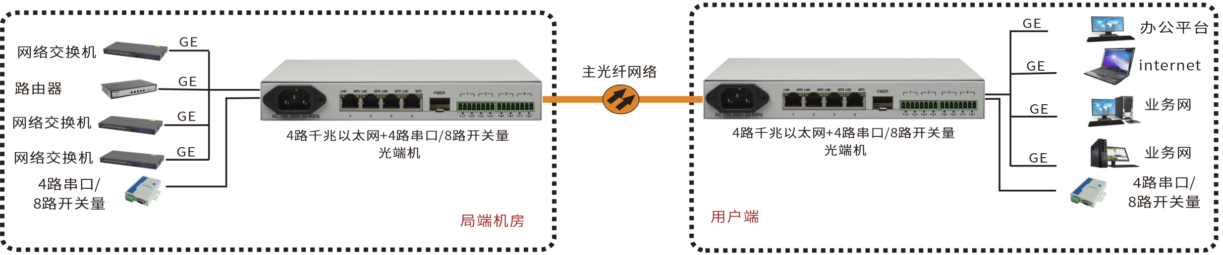 | 產(chǎn)品功能描述 | 在1光纖上同時(shí)傳送4路千兆以太網(wǎng)接口(共享1000M帶寬),1-8路開關(guān)量接口/1-4路RS232-422-485接口; |