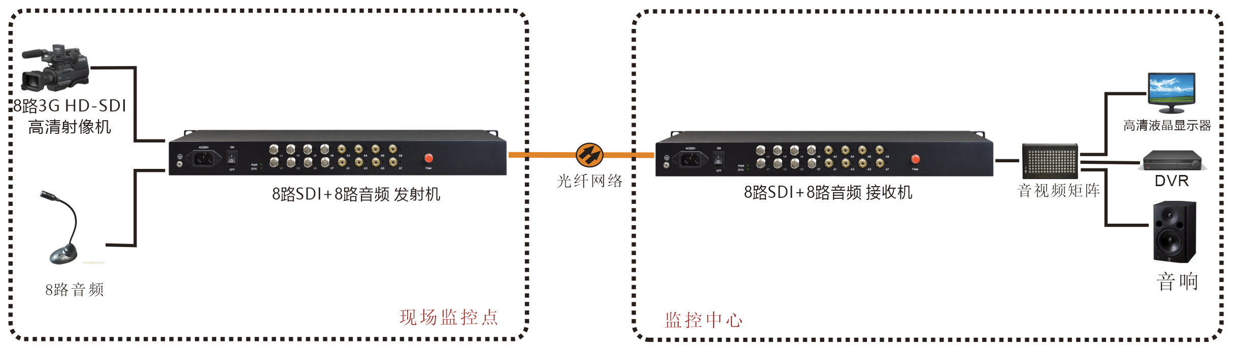 8路3G HD-SDI+8路蓮花座音頻 光端機(jī)