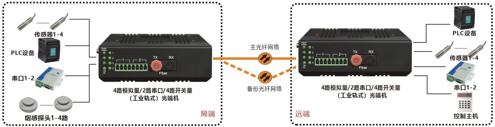 | 產(chǎn)品功能描述 | 在光纖上同時(shí)傳送4路模擬量接口或4路開(kāi)關(guān)量或2路串口 |